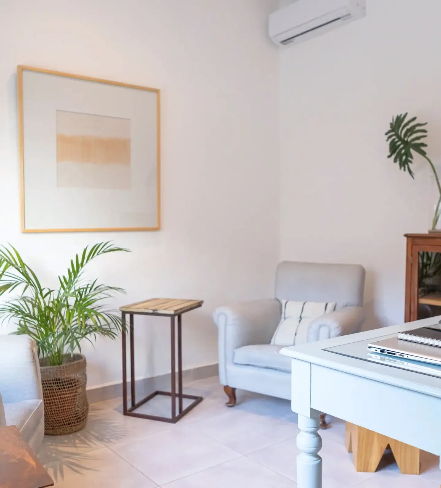 Inside, the therapy space offers a safe, quiet and confidential environment for us to work together.